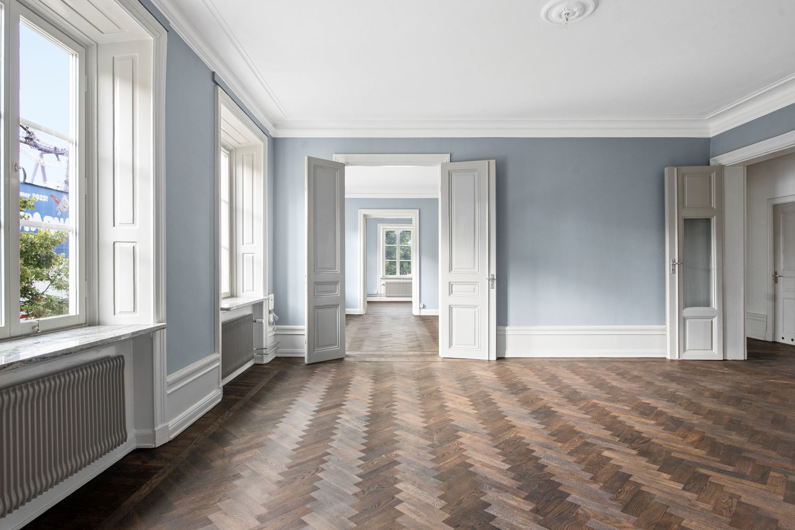 Kontorslokalen är representativ i klassisk paradvåningsstil med ljusinsläpp från flera väderstreck och fyra rum i fil mot Allmänna gränd. Här erbjuds utsikt över Ladugårdslandsviken, Kastellet och Gröna Lund. Lokalen rymmer två mötesrum, två wc med dusch, ett fullutrustat kök samt generösa arbetsytor. Till fastigheten hör dessutom en grönskande innergård med vy mot ABBA The Museum och Liljevalchs – en miljö som lämpar sig för både avkoppling och möten.
